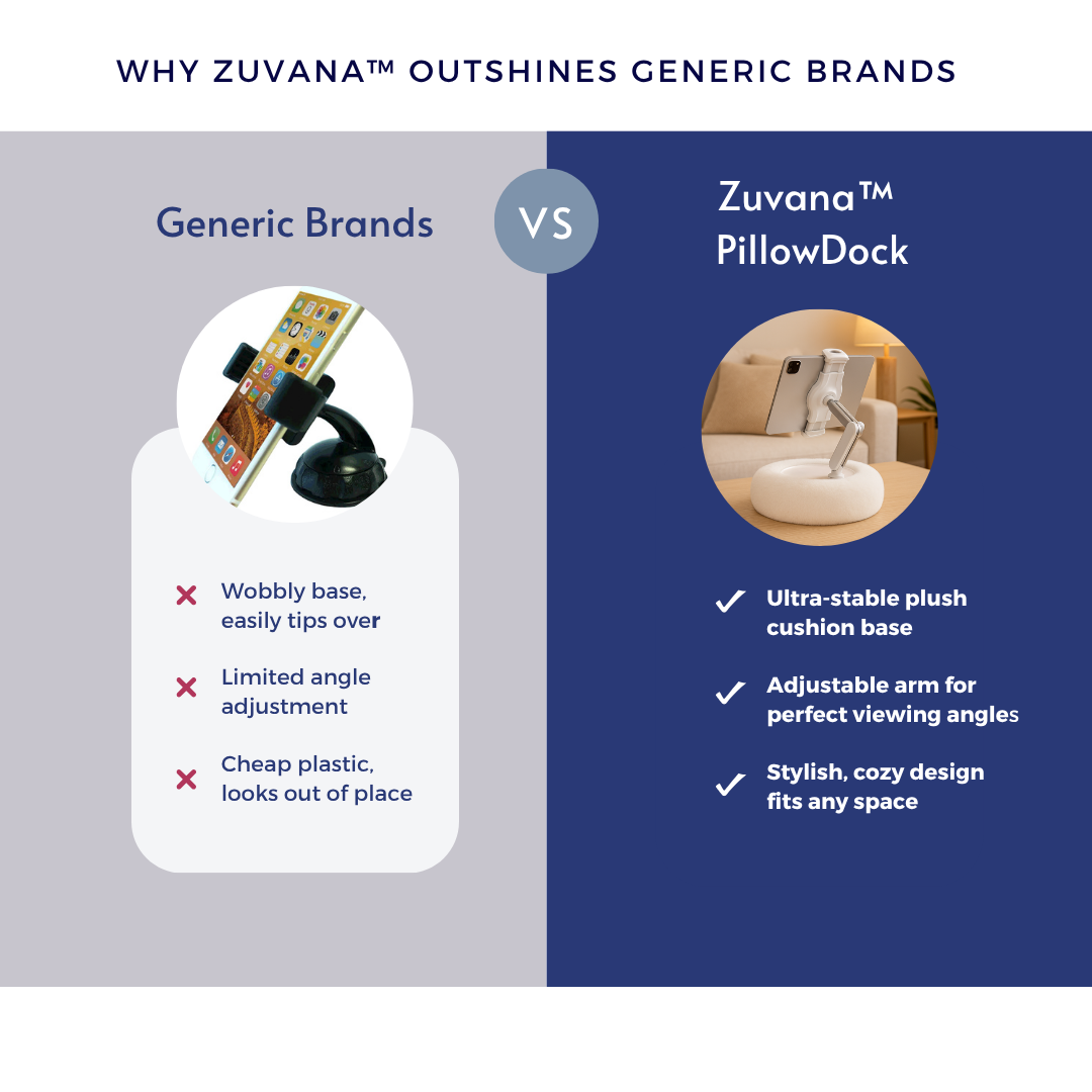 Zuvana™ PillowDock isn’t just a stand; it’s your personal comfort assistant, turning any spot into a cozy media zone.